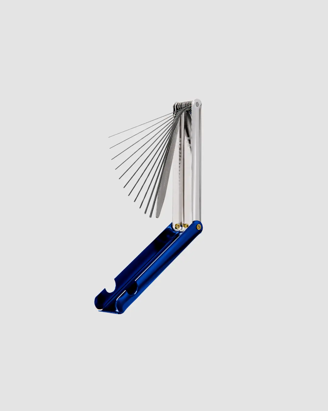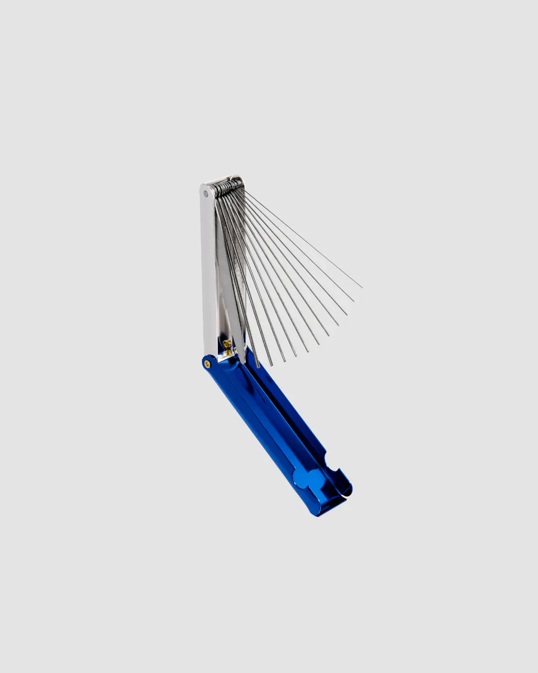 El limpiador de boquillas está compuesto por un conjunto de agujas de diferentes diámetros, diseñadas para eliminar residuos de soldadura, óxido y obstrucciones en las boquillas del soplete. Ofrece una solución práctica y eficiente para el mantenimiento regular del equipo, garantizando un flujo de gas uniforme y un desempeño seguro durante el uso.