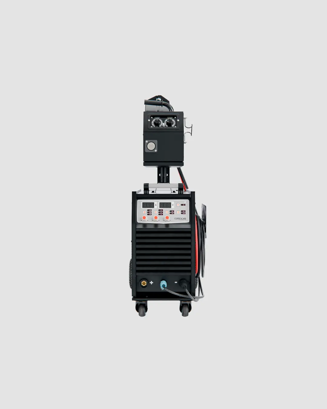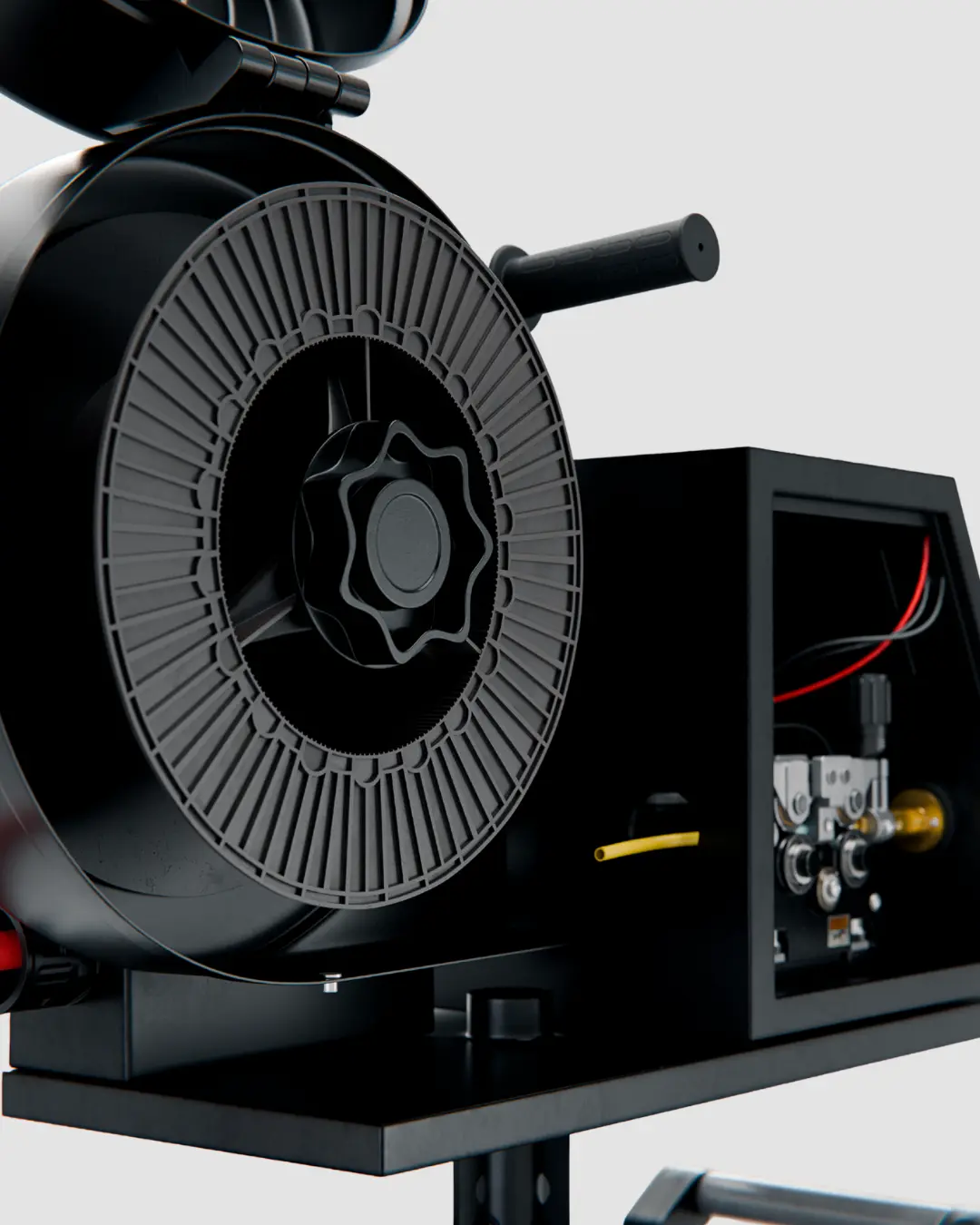 El equipo también ofrece funciones avanzadas como el modo de accionamiento 2T/4T, selector práctico de gas (100 % CO₂ o mezcla de 20 % CO₂ + 80 % Argón) y sistemas de protección contra sobrecorriente y sobrecalentamiento, garantizando durabilidad, seguridad y alta confiabilidad.