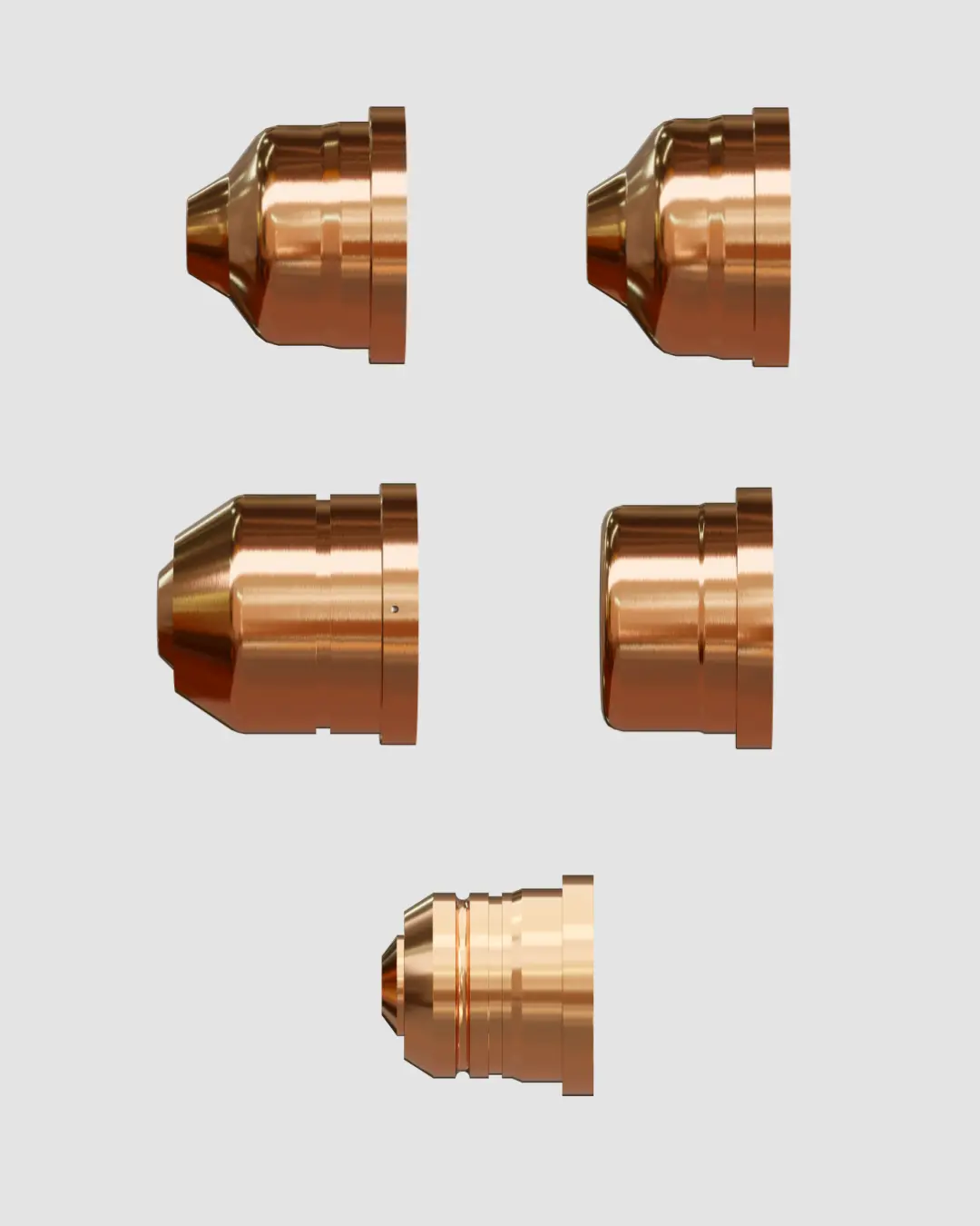 O modelo FINECUT é ideal para chapas finas, com cortes mais delicados e acabamento refinado. Já os modelos de alta amperagem (125A e 150A) são voltados para operações robustas em metais mais espessos. Todos os bicos apresentam resistência à erosão elétrica, estabilidade térmica e encaixe perfeito no cabeçote da tocha mecanizada.