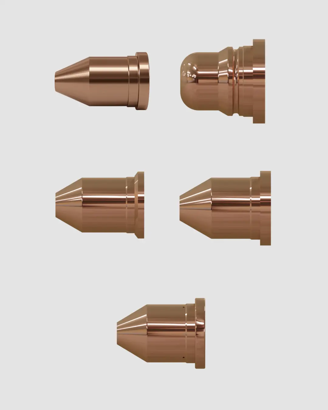 Os bicos das séries 45A até 105A são consumíveis de alta precisão, desenvolvidos para uso com as tochas mecanizadas Extreme Power. Cada bico é calibrado para operar dentro de uma faixa específica de corrente, garantindo corte limpo, estável e com mínima rebarba em metais ferrosos e não ferrosos.