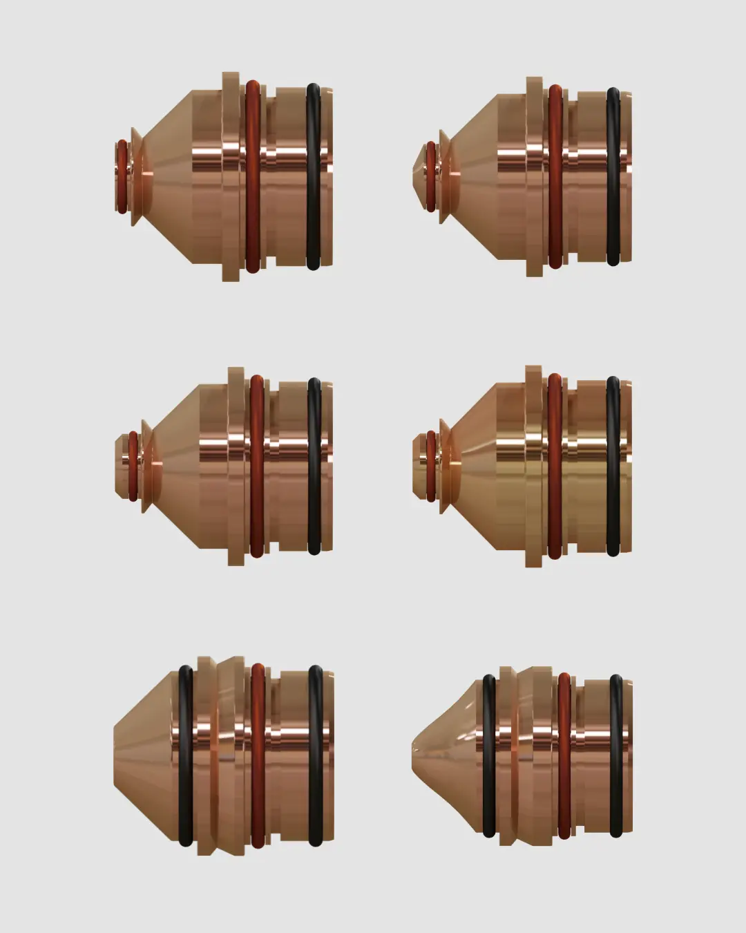 A construção em duas peças (TWO PARTS) proporciona melhor controle do arco plasma, resistência térmica reforçada e durabilidade superior, especialmente sob uso contínuo. Cada modelo é calibrado para sua faixa de corrente ideal, garantindo qualidade de corte, estabilidade do arco e eficiência energética, mesmo em aplicações severas com altas potências.