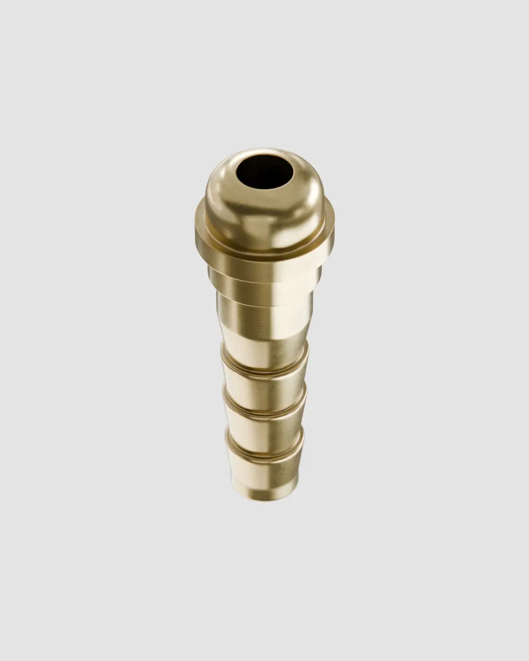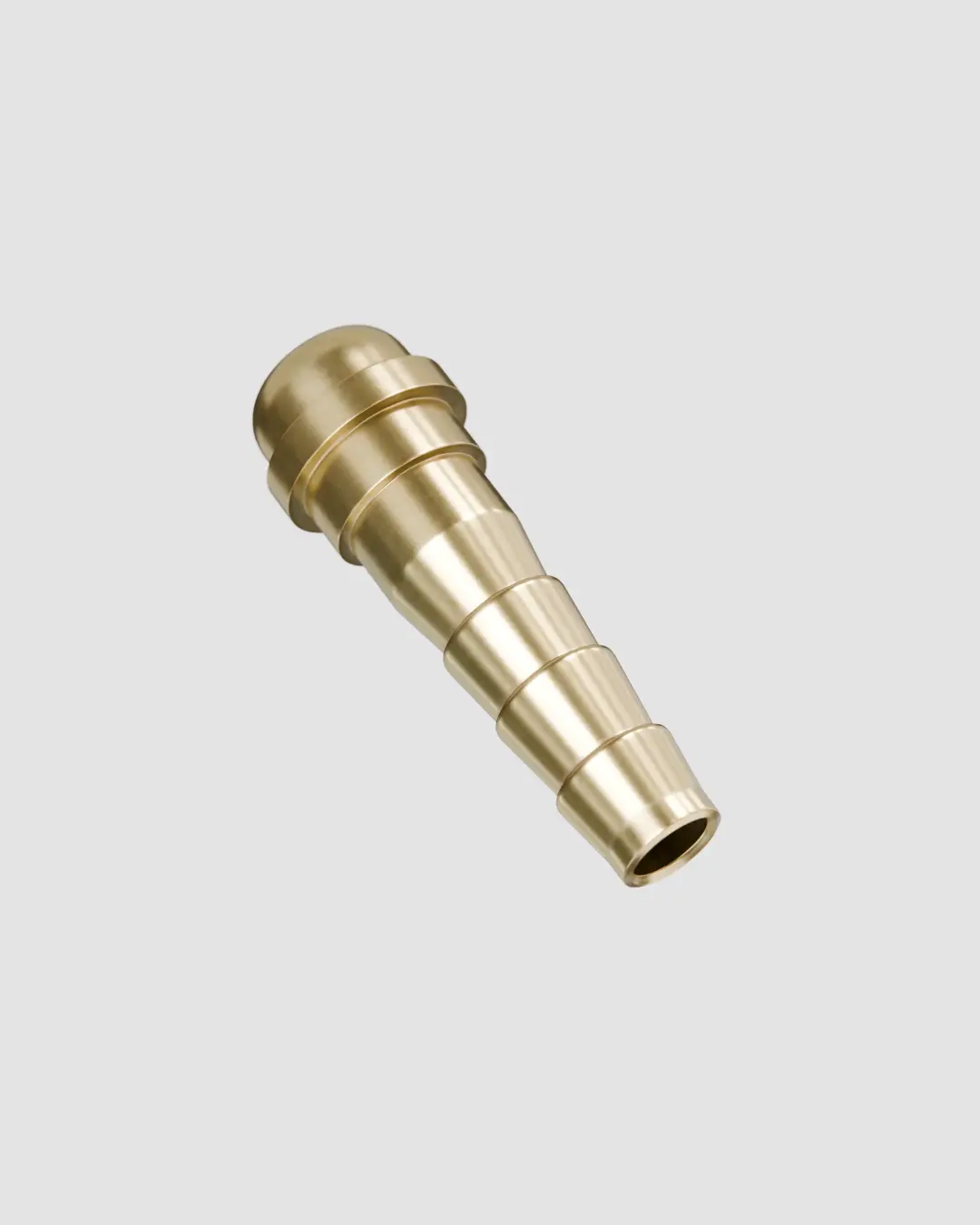 O espigão é o conector responsável pela ligação entre a mangueira e a porca. Fabricado em latão CLA usinado, possui formato cônico com estrias (anéis de retenção), que proporcionam excelente fixação ao tubo flexível e garantem vedação total com segurança, impedindo vazamentos. É adequado para mangueiras de 5/16”.