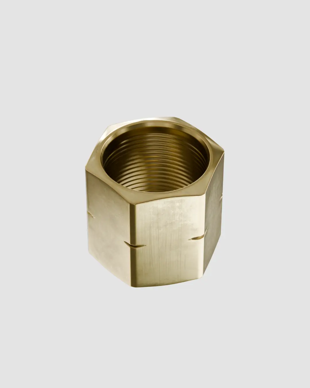 A porca esquerda é usinada em latão CLA e utilizada em conexões para gases combustíveis, como acetileno ou GLP. Conecta-se ao niple 5/16” para fixar a mangueira ao regulador ou ao maçarico. Sua rosca do tipo LH (Left Hand) garante vedação confiável e alta durabilidade em aplicações com gases inflamáveis.