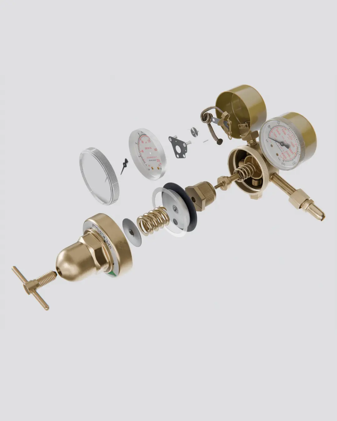 A linha de reguladores de pressão 725 proporciona segurança, confiabilidade e regulagem com ajuste preciso para o controle de pressão e vazão para cilindros. Projetado dentro das normas técnicas nacionais e internacionais. Sua gama de modelos permitem a utilização com oxicombustíveis e também solda com gases de proteção com arco elétrico.